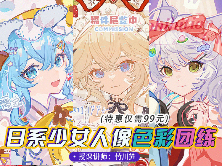 【录播课】竹川笋日系少女头像团练